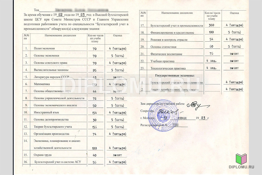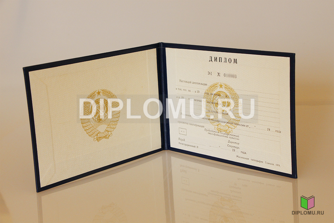 На нашем сайте Вы можете купить диплом техникума СССР (диплом старого образца) с окончанием среднего профессионального учебного заведения в 70-х, 80-х и 90-х годах до 1996 года включительно. До 1991-1993 годов корочки заверялись гербовой печатью СССР (РСФСР), а после данного периода — гербовой печатью России с двуглавым орлом. Наши специалисты заполнят Ваш документ по всем правилам, установленным на тот период. Заверяются «мокрыми» печатями и нужными подписями. Обращайтесь. Работаем быстро, профессионально.